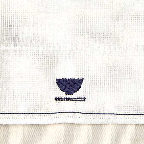 ネイビーの糸でお椀と箸の刺繍をあしらった絵柄と、
