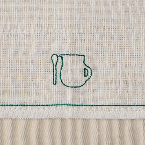 グリーンの糸でピッチャーとスプーンの刺繍をあしらった2種類のご用意です。