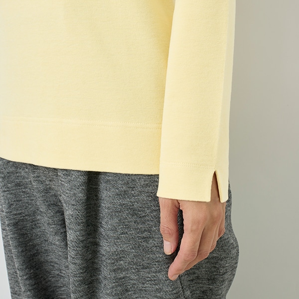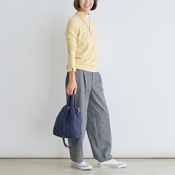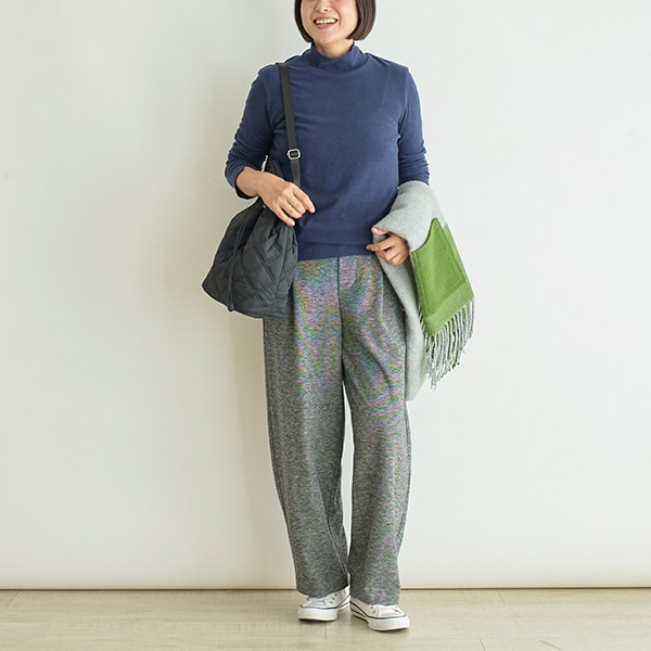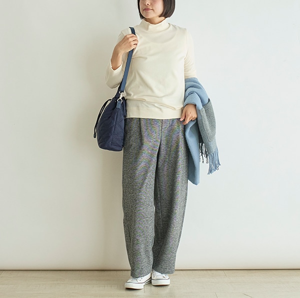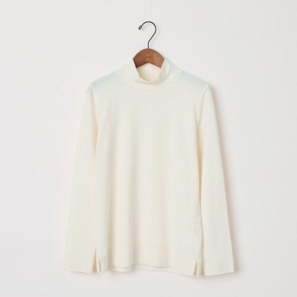 ハイネックなので、首回りが暖かく、タートルネックよりも首元がすっきりしているため、着心地も◎