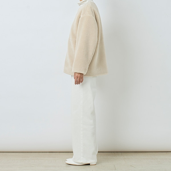 ノーカラーのボアアウター。