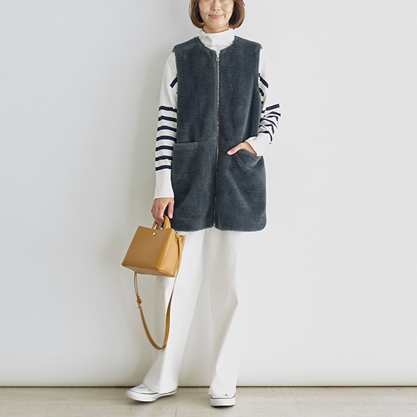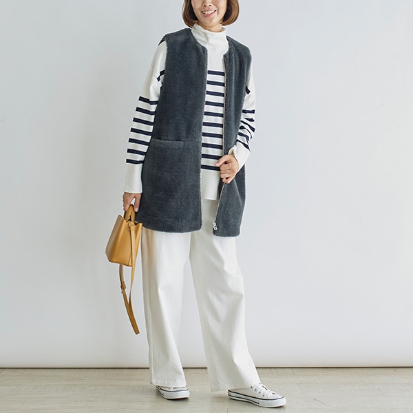 ヒップまで隠れる安心の着丈で、自然と体型をカバーしてくれるのもうれしいです。