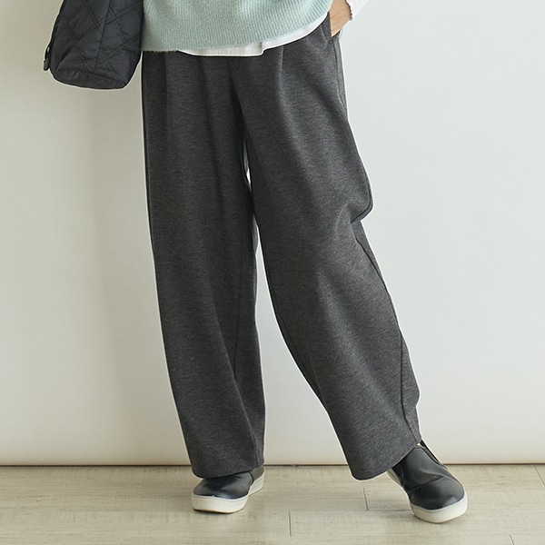 適度な厚みのある、起毛素材を使ったワイドパンツ。
