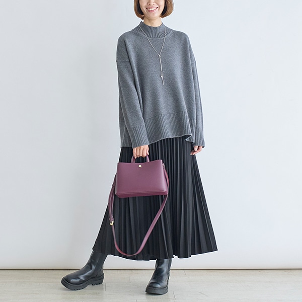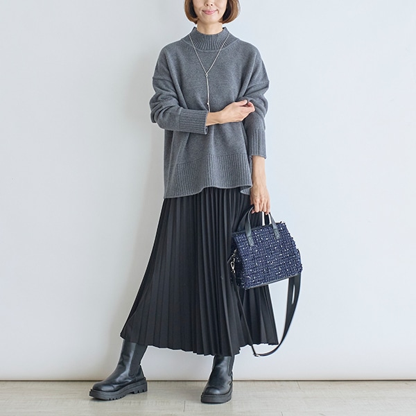 コーデュロイパンツやプリーツスカートとの組み合わせもおすすめです。
