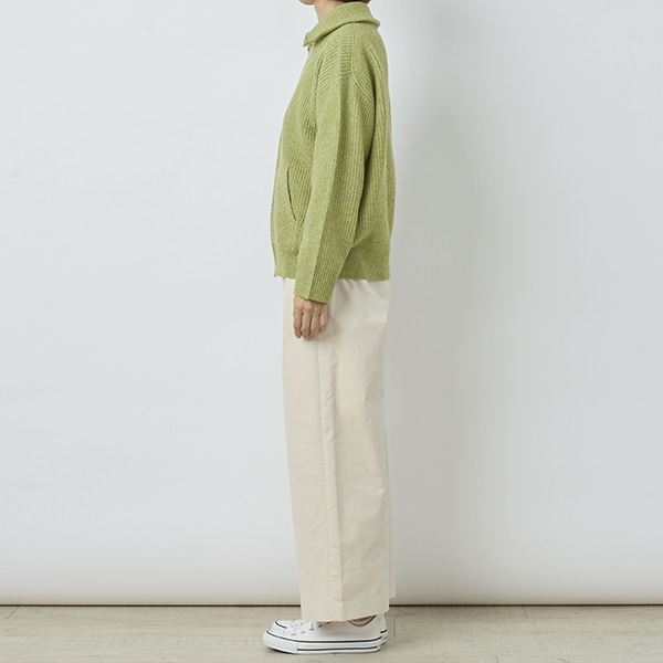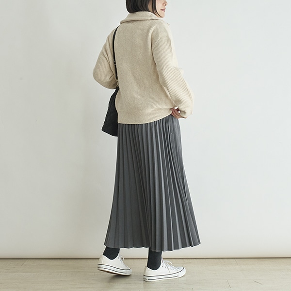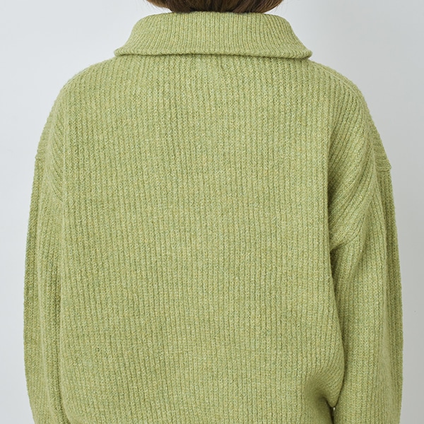 襟元を少し開けてプルオーバー風に着こなすのも◎