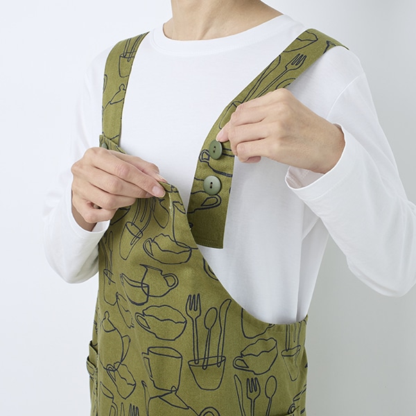 大きめのパッチポケットには、ふきん掛けループが付いているので、手を洗った後もサッと拭けて便利です。
