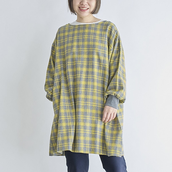 袖口はリブになっているので、水仕事の際もサッと上げられて便利。秋らしいあたたかみのあるチェック柄