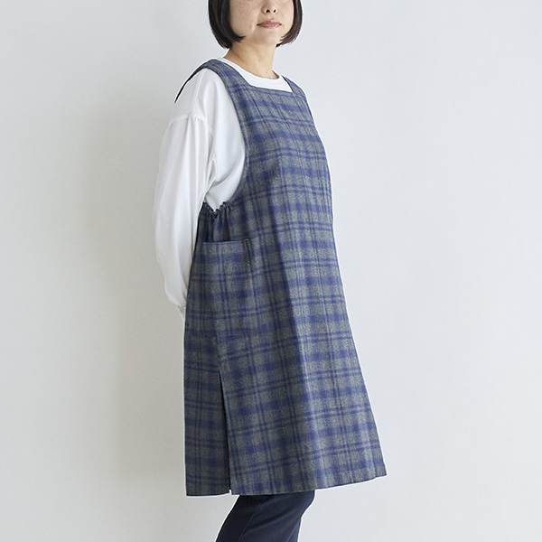 綿100%の起毛素材を使用したチュニックエプロン。