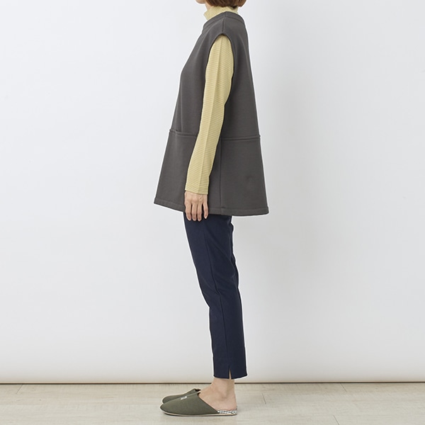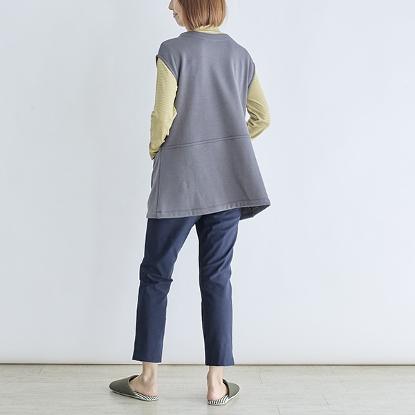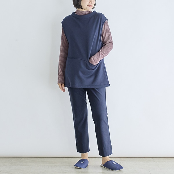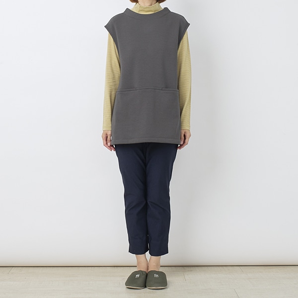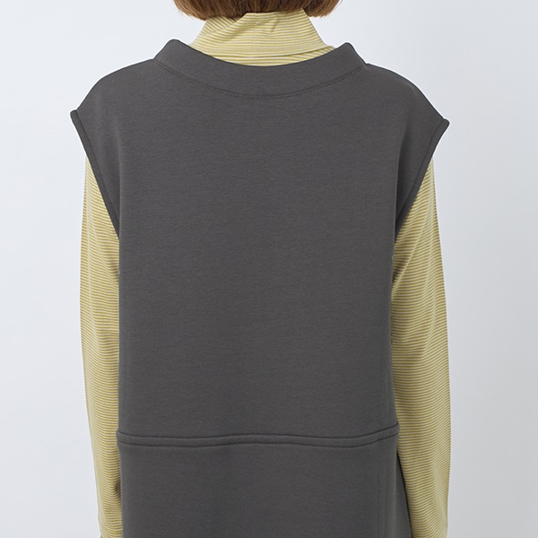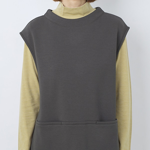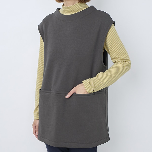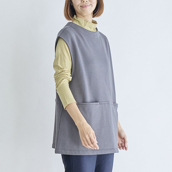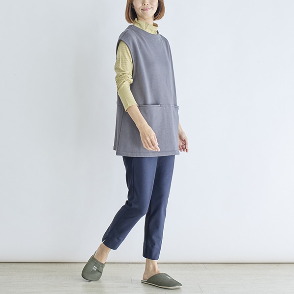 ベスト代わりに一日中着けていられるデザインで、さっと被るだけで簡単に着用できるのも魅力のひとつ。
