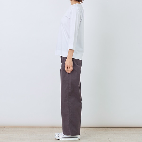 適度なハリとつやがある素材で、カジュアルなTシャツも上品に見えます。