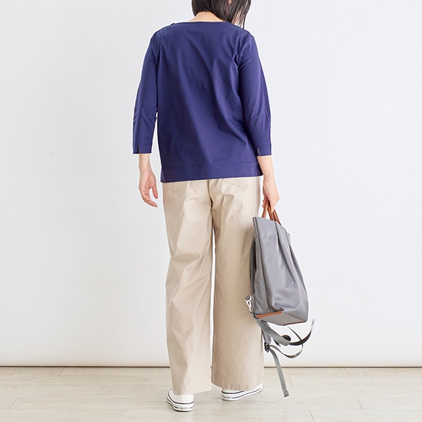 どんなボトムにも合わせやすく、一枚ではもちろん、インナーにしてももたつかないサイズに仕上げました。