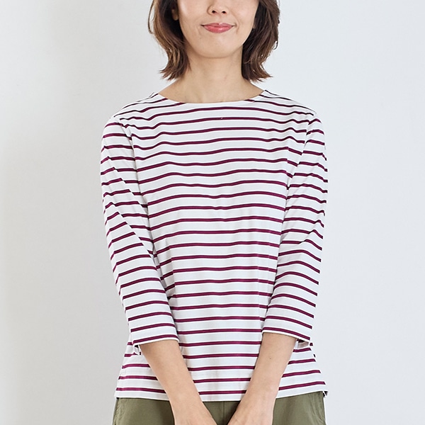 コットンスムースボーダー七分袖Tシャツ
