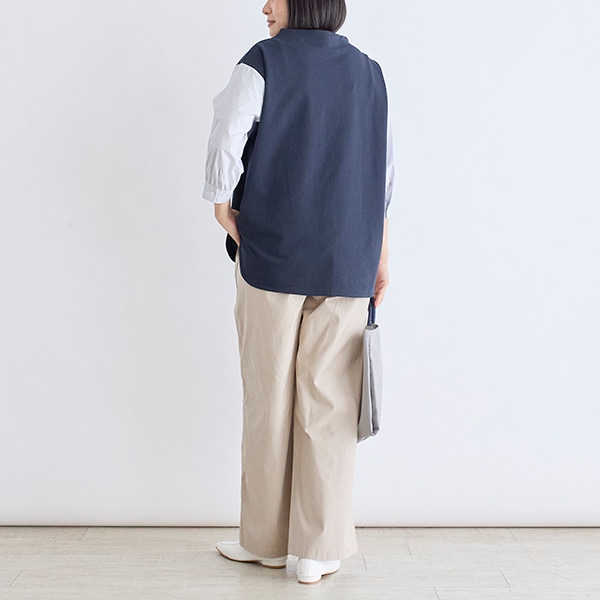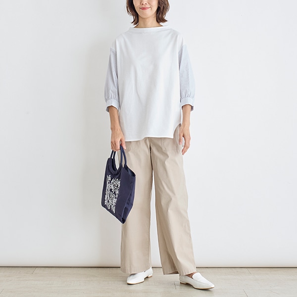 少し立ち上がりのあるボトルネックのデザインで、ブラウスのようなきちんと感もありながら、カットソーならではの着心地の良さが魅力です。