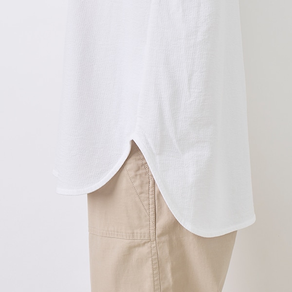 着心地の良いカットソーに、ブラウスのようなきちんと感がプラスされたプルオーバーです。