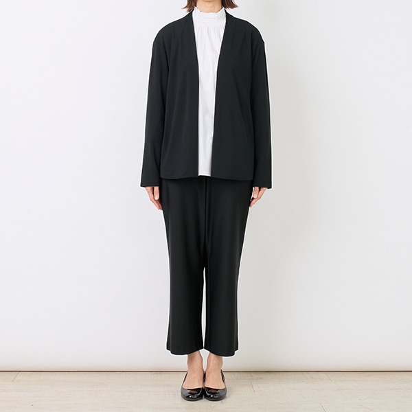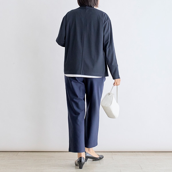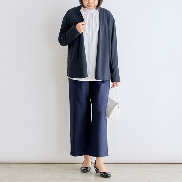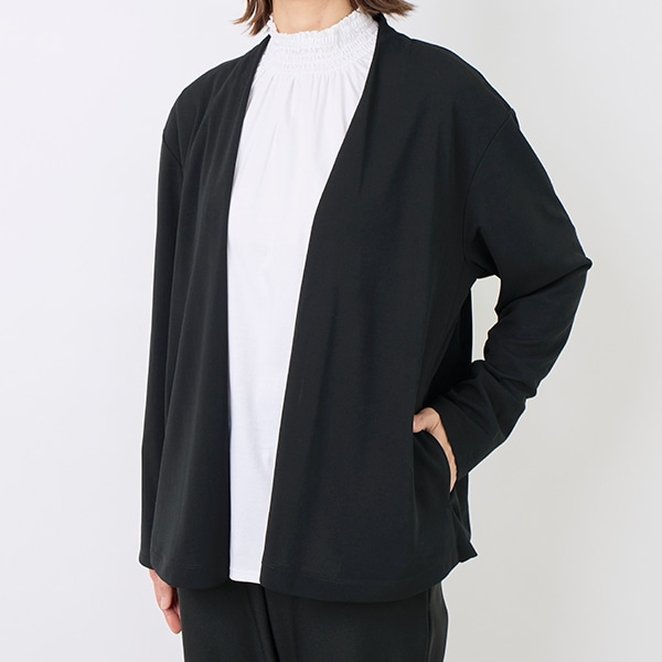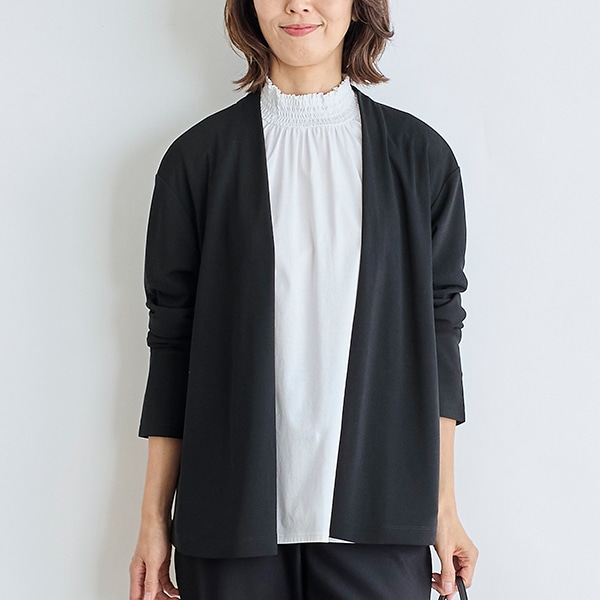 ボタンレスでさらっと気軽に羽織れるデザインです。