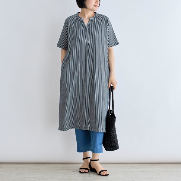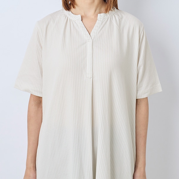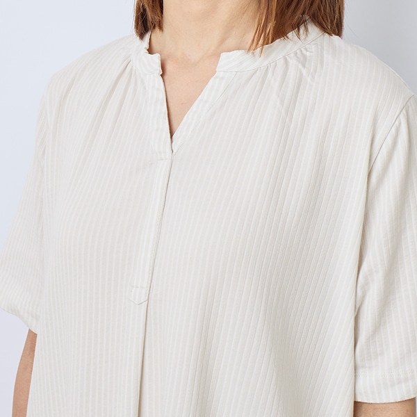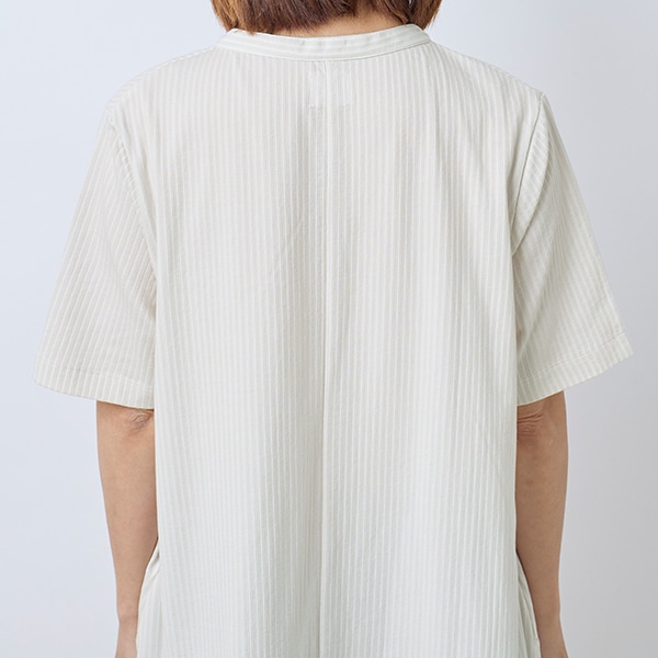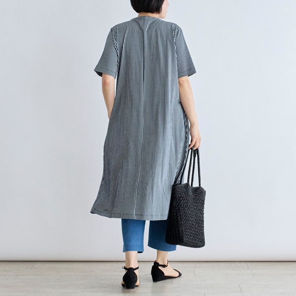 爽やかなストライプ柄で、暑い季節も軽やかに着こなせる一枚です。