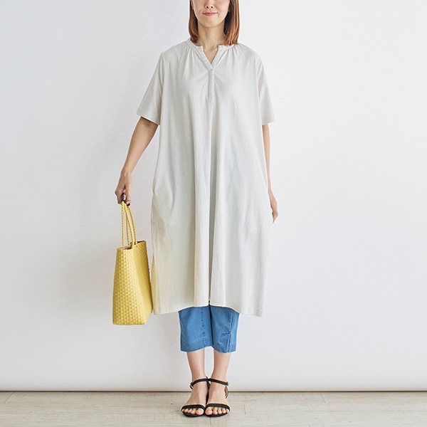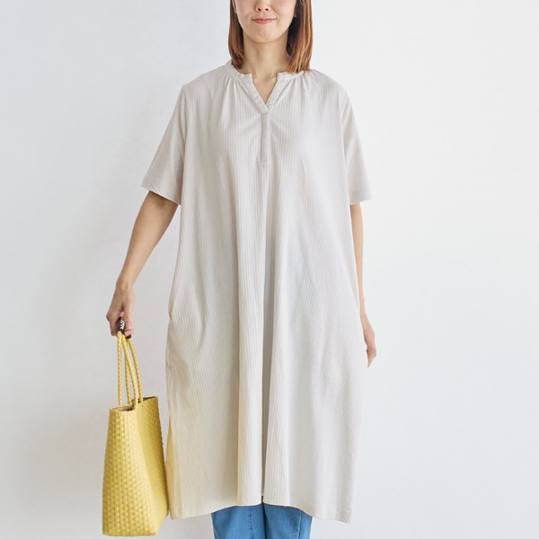 涼しげな素材感が魅力の、サッカージャージーワンピース。