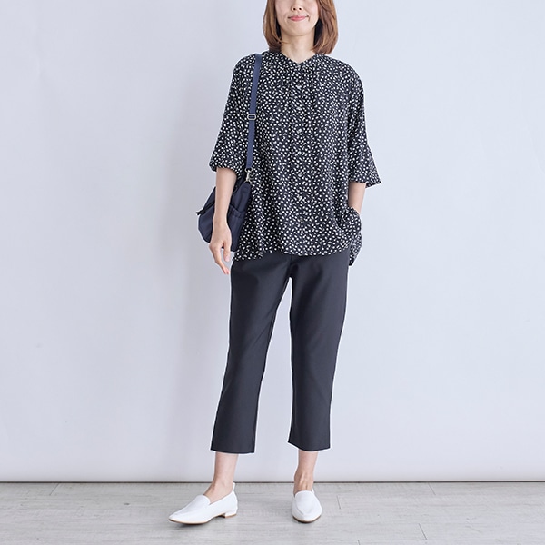 裾は足首をきれいに見せる、軽やかな抜け感のある丈感です。