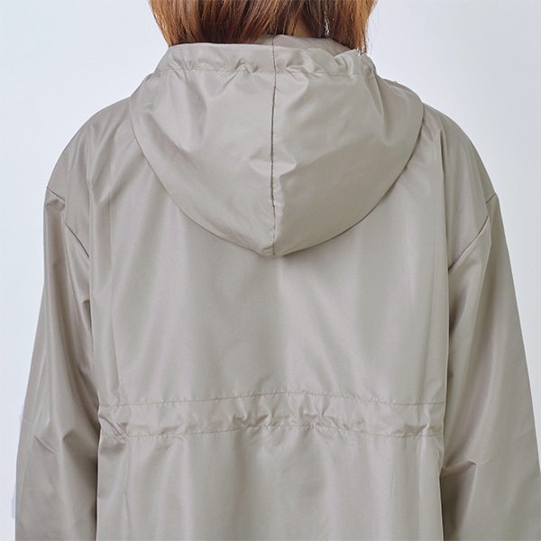 フード付きなので、ちょっとした雨なら、傘をさせない自転車移動でも快適です。外出先や、旅先での急な天候の変化にも対応できて、便利ですよ。首元のドローコードを絞れば、冷たい風の侵入を防ぎ、肌寒い日も安心です。