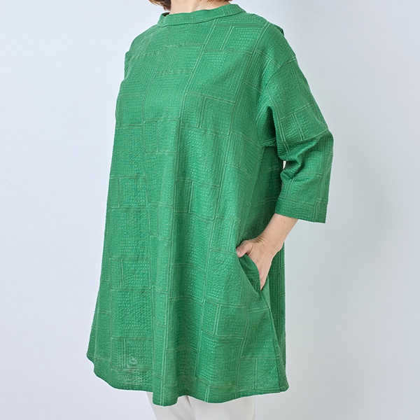 七分袖と腰まわりをカバーする安心の丈感で、ロングシーズン着回しできる一枚。