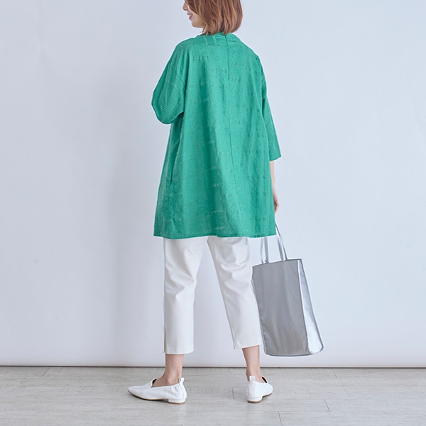 涼やかな生地感で、コーディネートの主役になる一枚です。