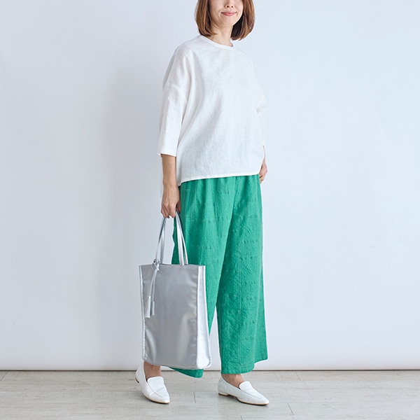 ワイドパンツやプリントパンツと相性が良く、春から晩夏までロングシーズン着まわせます。