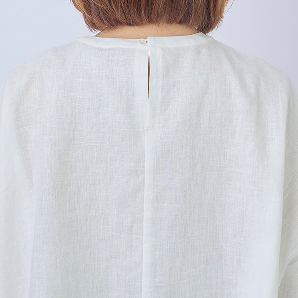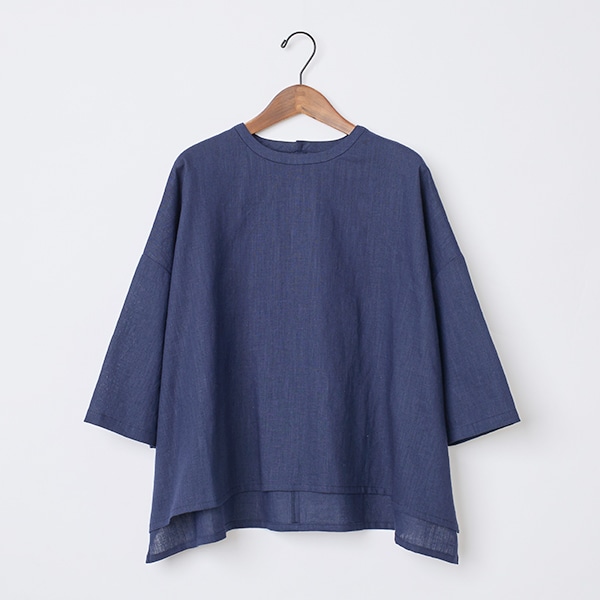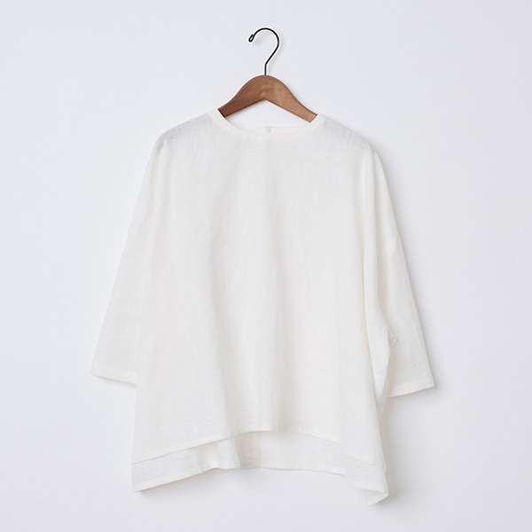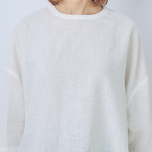 小ぶりのクルーネックで、インナーが見えにくく一枚でも安心して着られます。