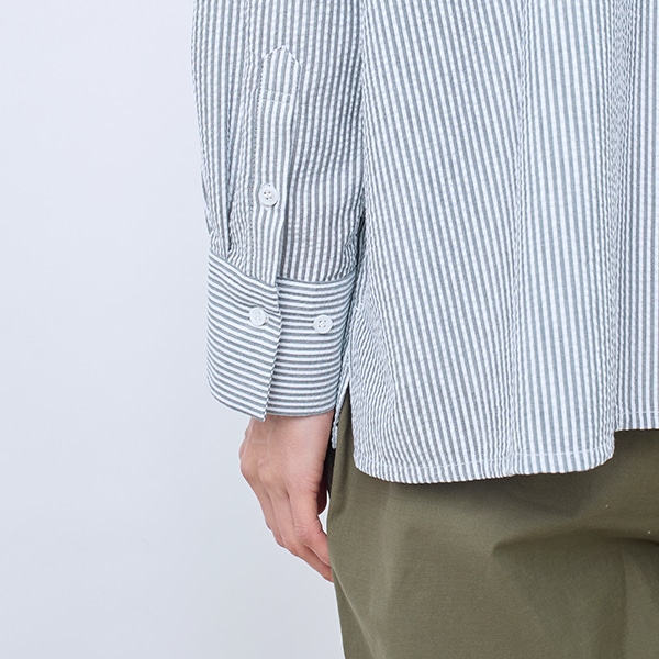 襟付きのワイドシャツ。
