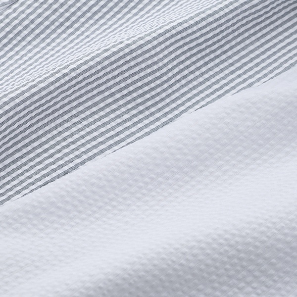 ストライプ柄のネイビーと、無地のホワイトの2色展開。