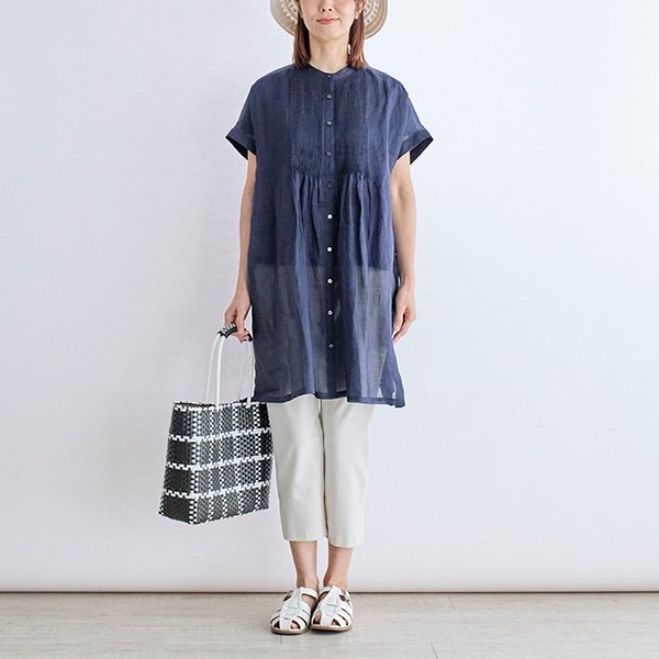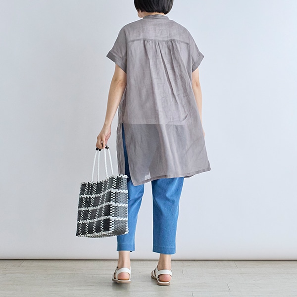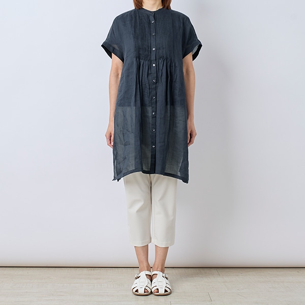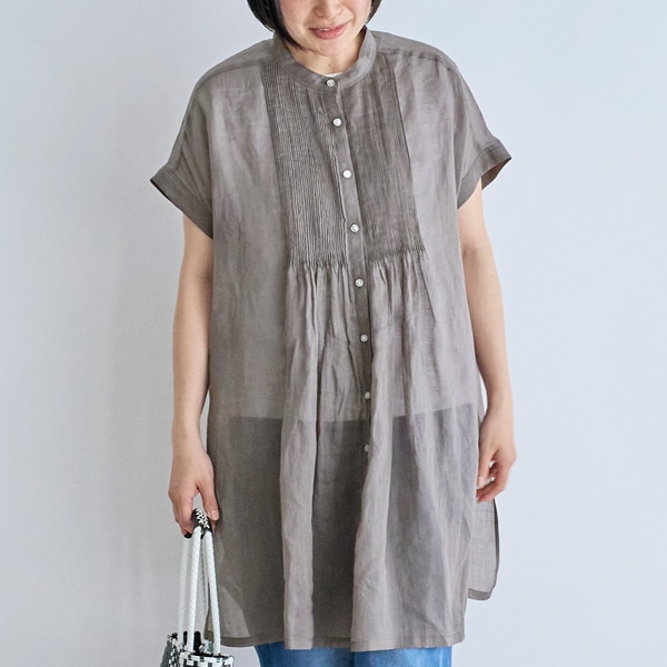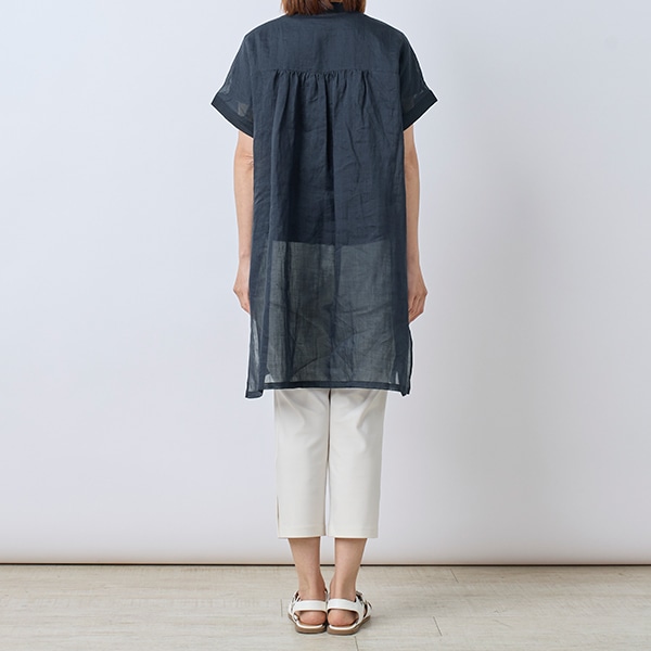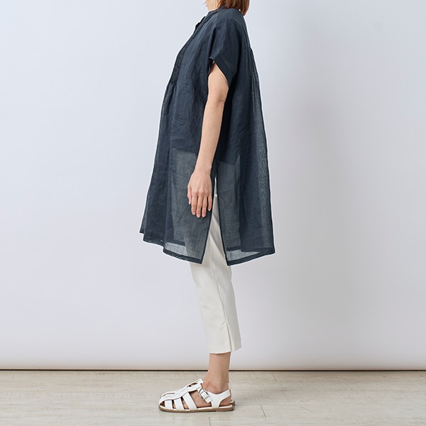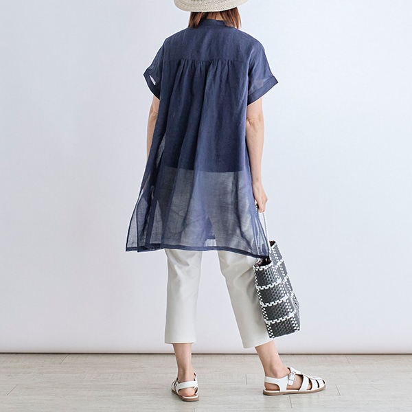 透け感のあるラミー(麻)素材を使用したチュニックシャツ。