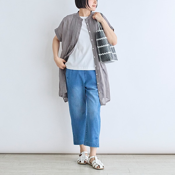 ラミー特有のやわらかな光沢と、天然素材100%ならではの通気性で、さらりと軽やかな着心地が魅力。