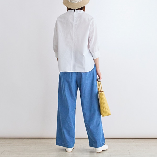 ナチュラルな風合いのコットンリネン素材を使用し、肌なじみがよく、軽やかで快適な着心地が魅力です。