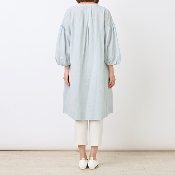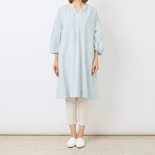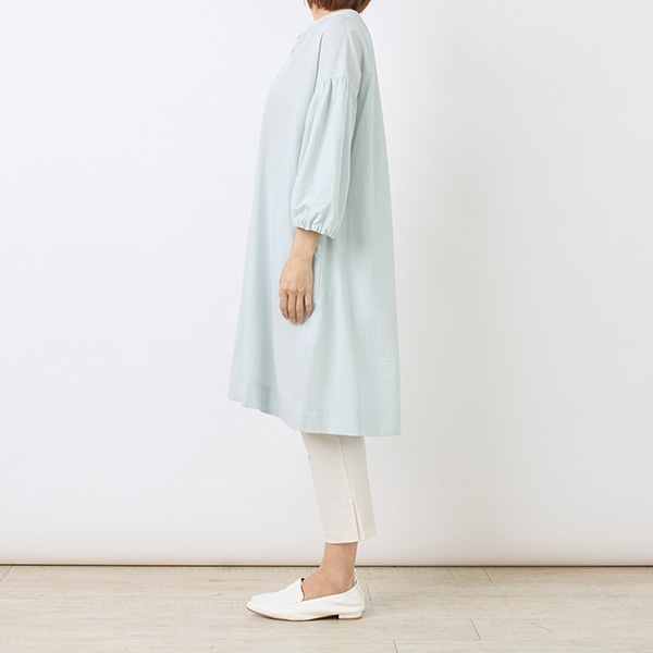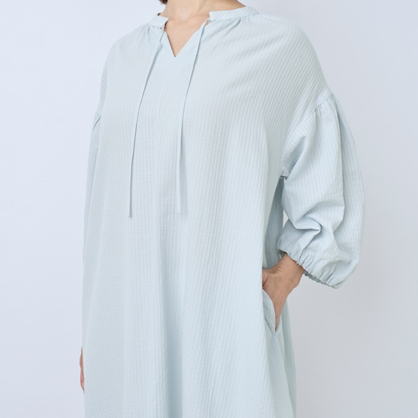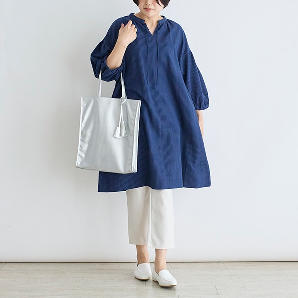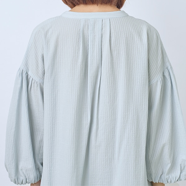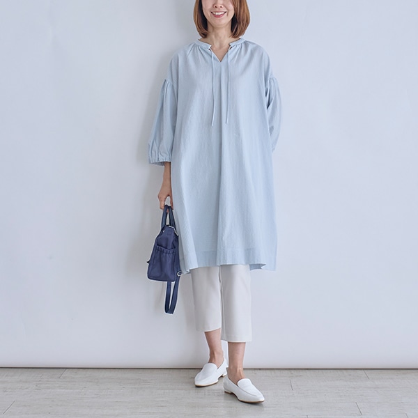 襟元がすっきりとしたスキッパーデザインと、ふんわり軽やかなシルエットで、1枚でも様になります。