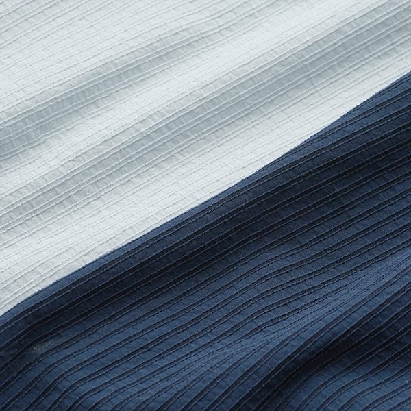 凹凸感のあるストライプの織り柄が特徴の、ドビー素材を使用しました。