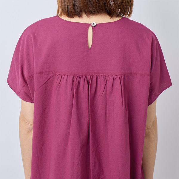 後ろ身ごろにギャザーをあしらい、女性らしさをプラス。