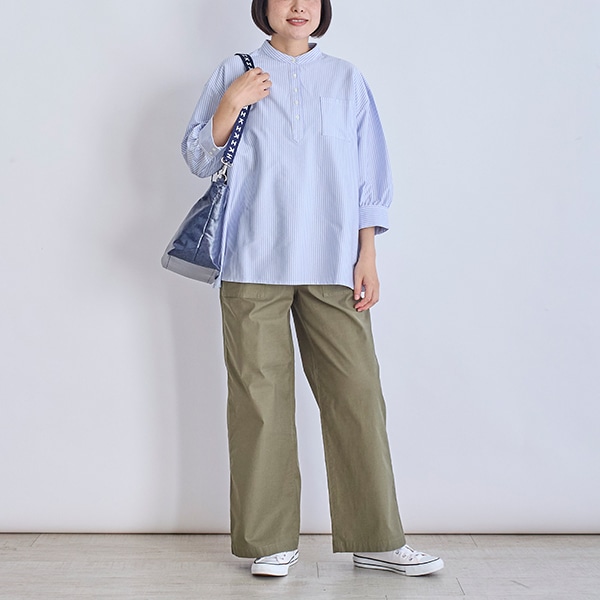 ストレッチが効いたセミワイドのストレートシルエットで動きやすく、レッグラインもカバーできます。