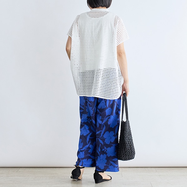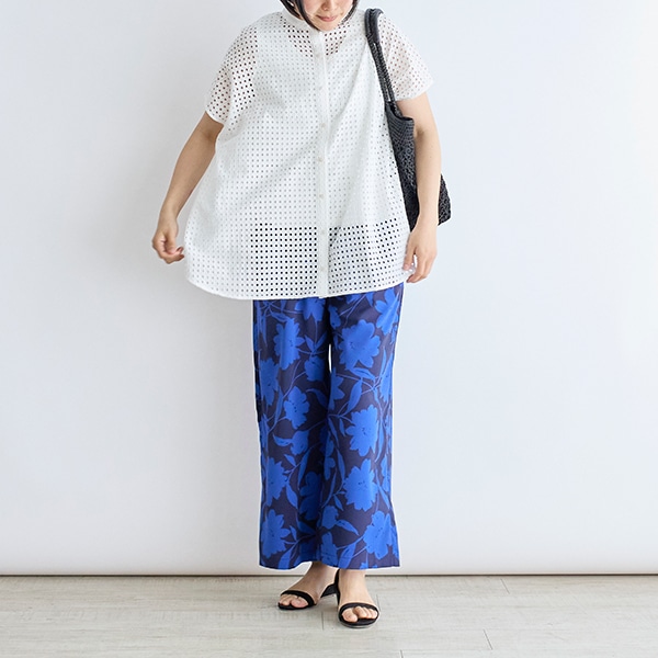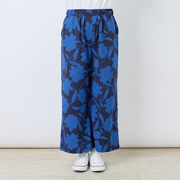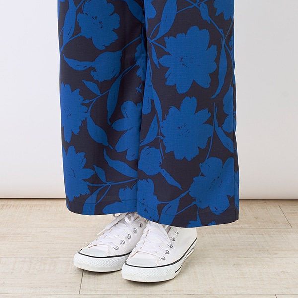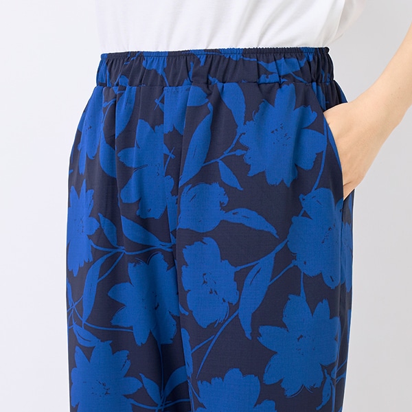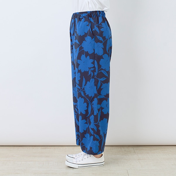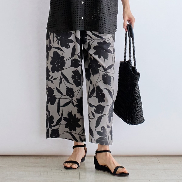 大ぶりな花柄プリントが目を引くイージーパンツ。