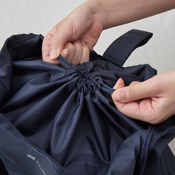 口の開閉がスムーズにできる巾着仕様。