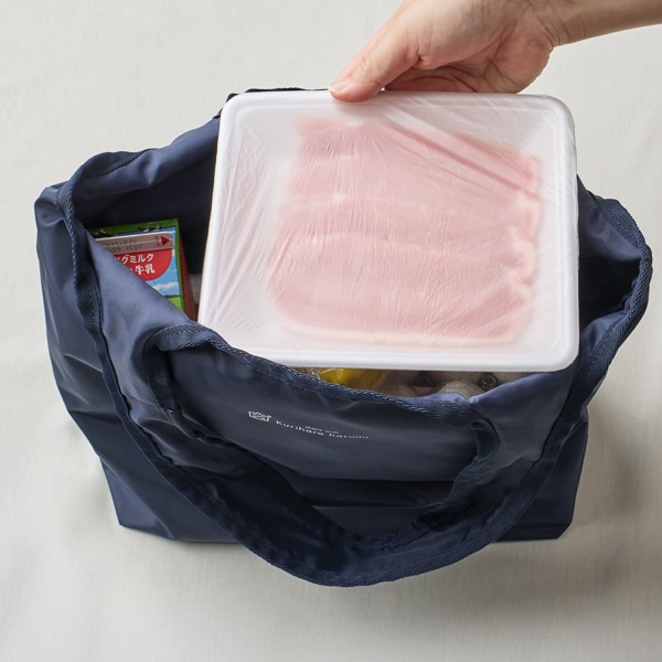 保冷剤が入れられるメッシュポケット付きで、食材の持ち運びにも安心です。