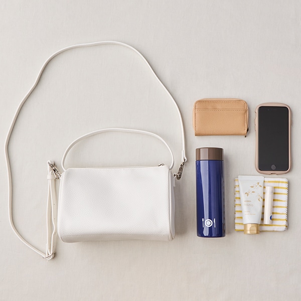 財布やスマホなどお出かけ時の必需品に加え、マグボトルもしっかり入ります。