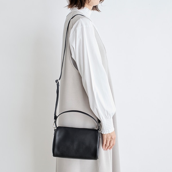 シンプルで、ころんとした形が可愛らしい2wayバッグ。