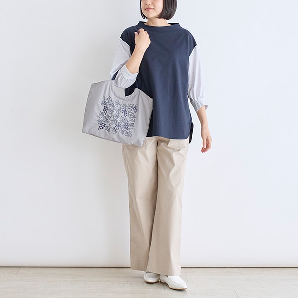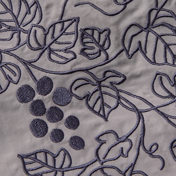 ぶどう柄の刺繍の存在感が、コーディネートのさりげないアクセントにもなります。