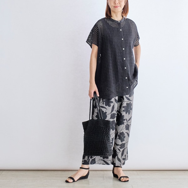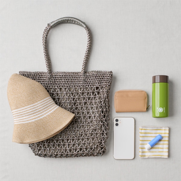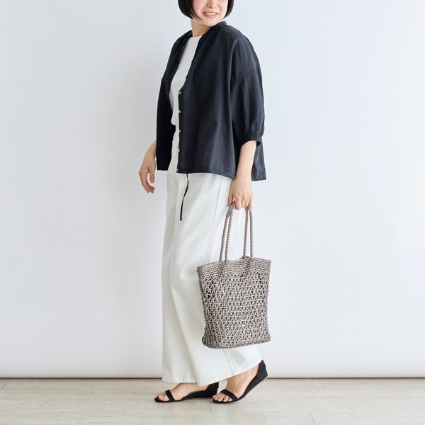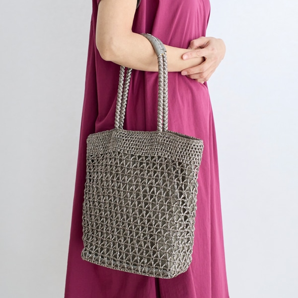 シンプルなトート型に、軽やかで涼しげな編み地が映えるデザインに仕上げました。