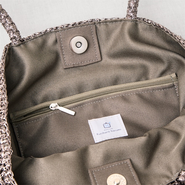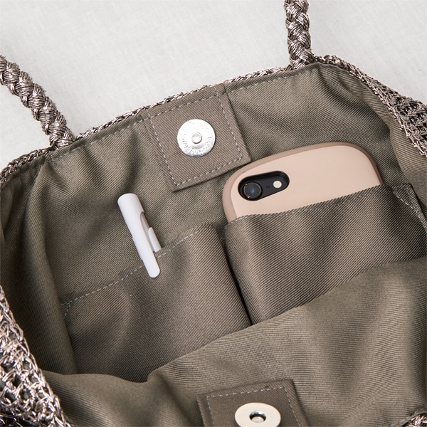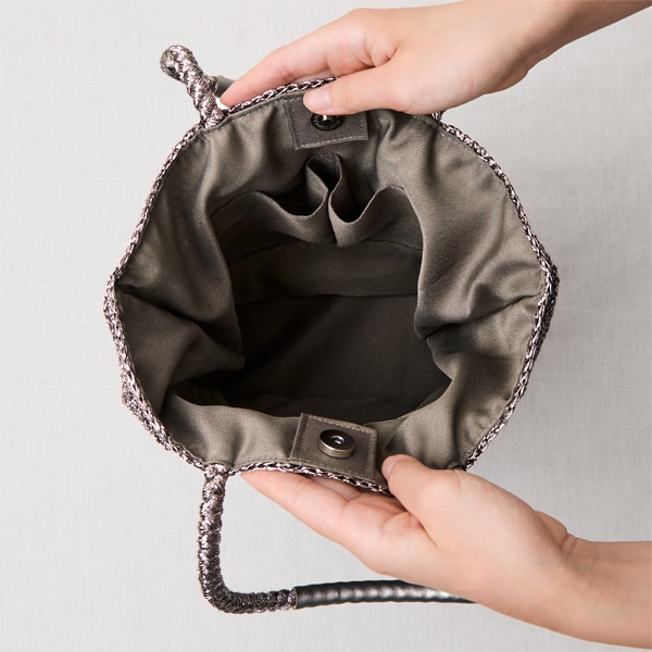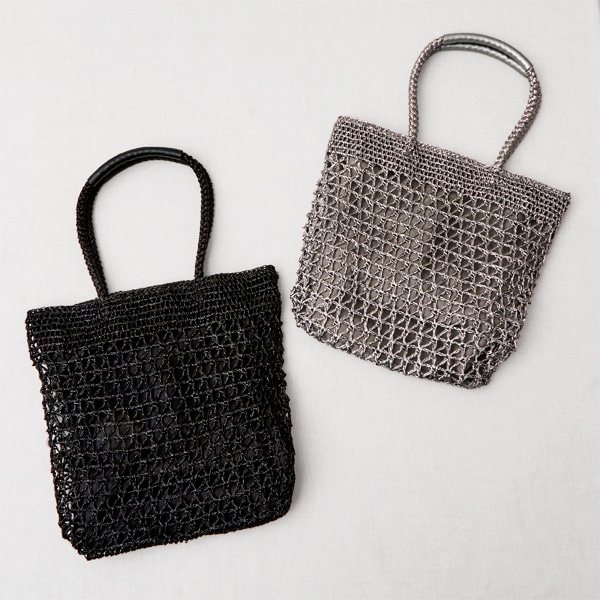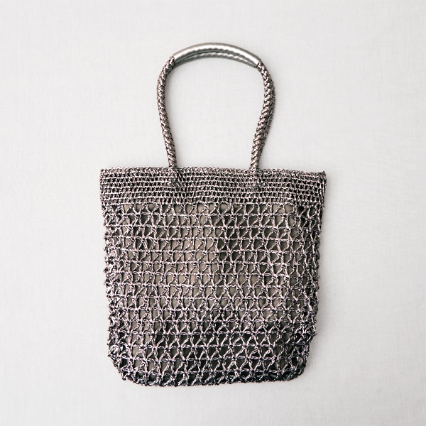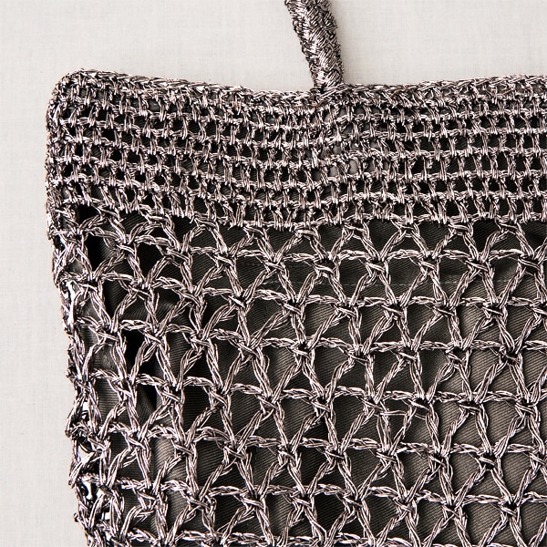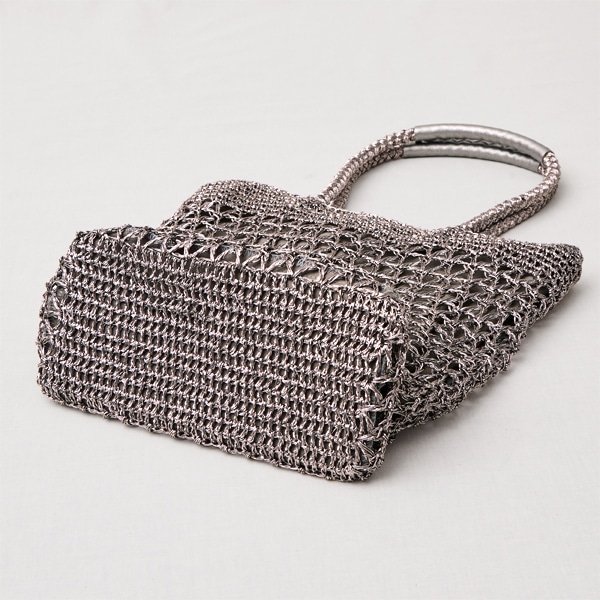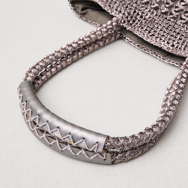 きらりと光るマクラメ編みの表情が魅力のバッグ。