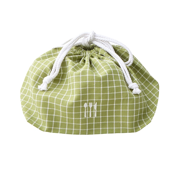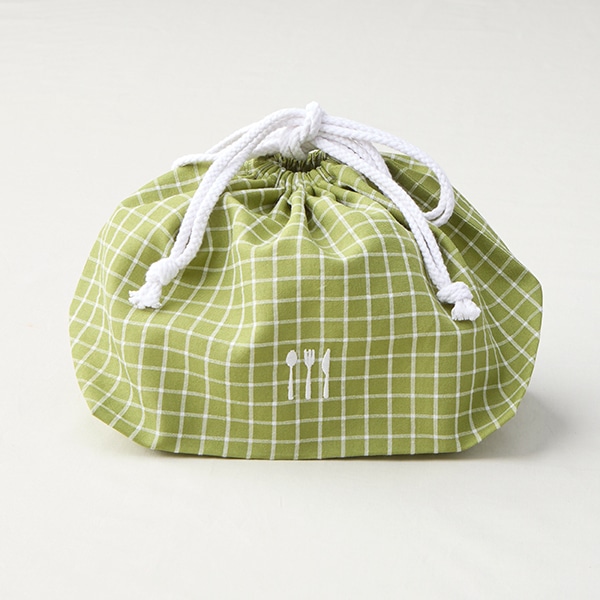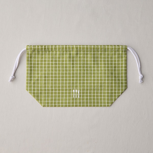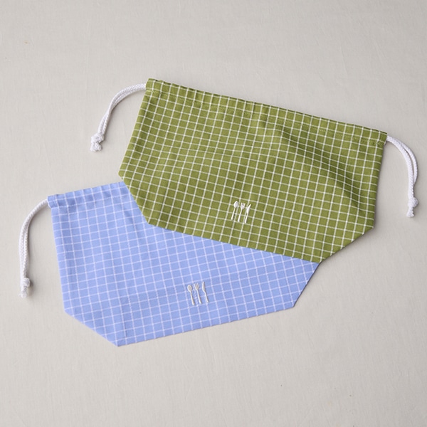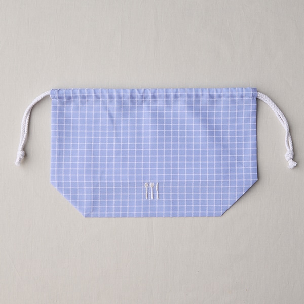 ワンポイントにカトラリーの刺繍をあしらった、ランチ巾着。