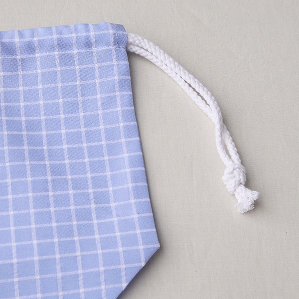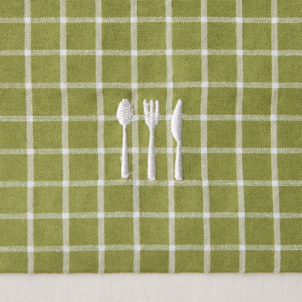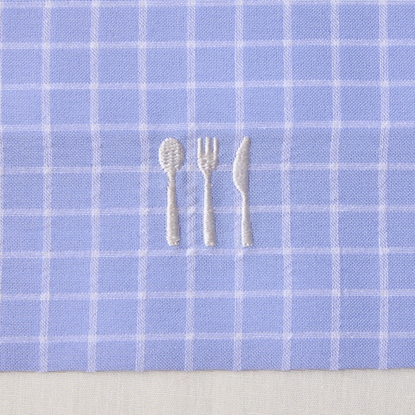 格子状のチェックの生地に、さりげないカトラリー刺繍がポイント。