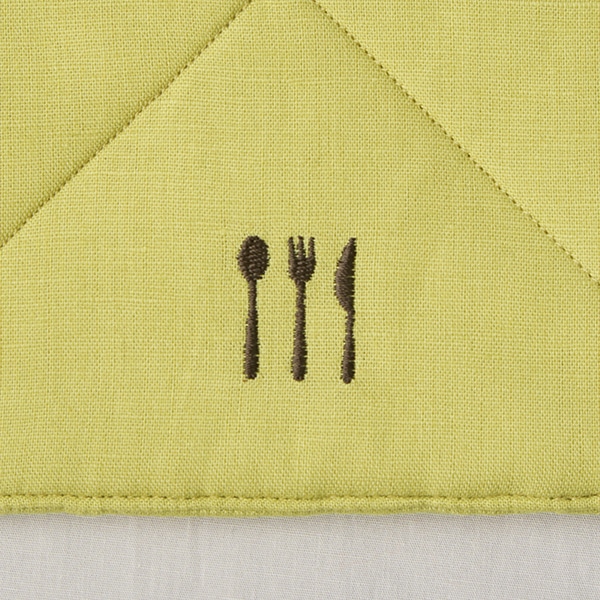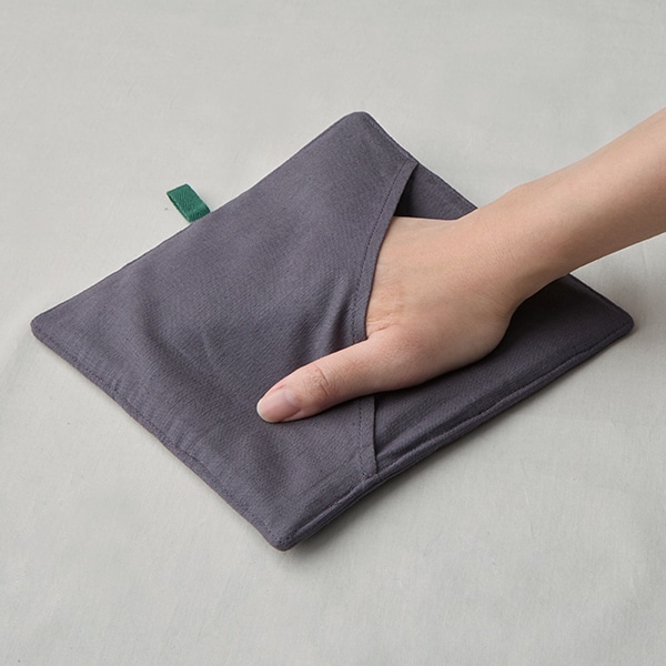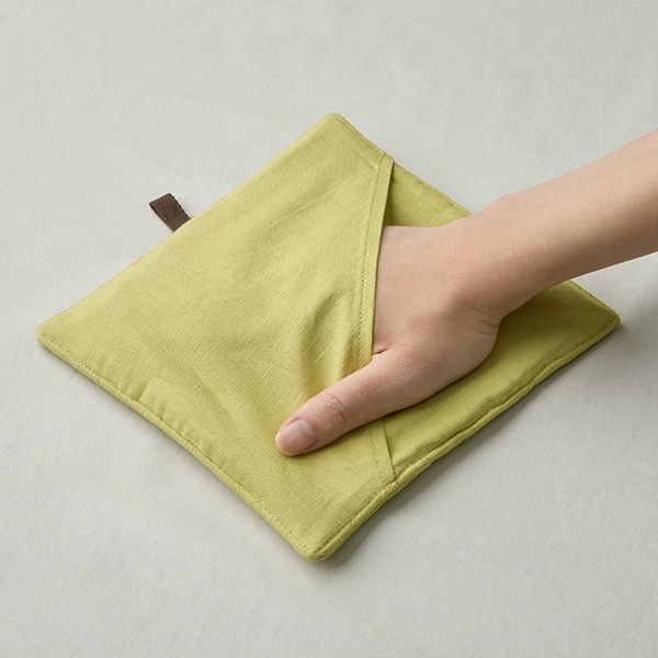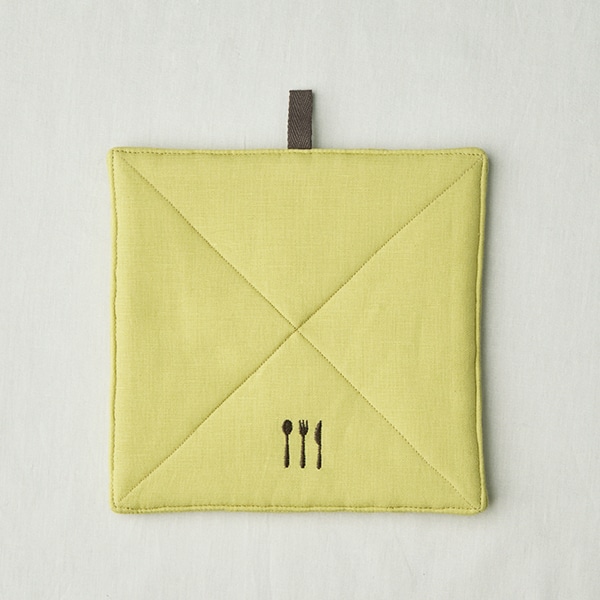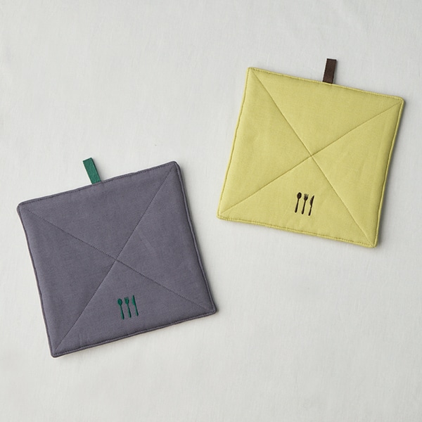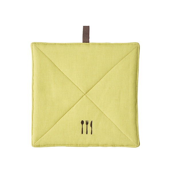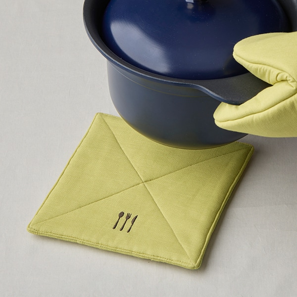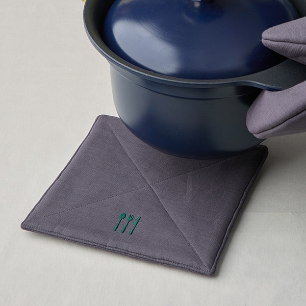 そのまま使えば鍋敷きに、後ろのポケットに手を入れれば、ミトン替わりとしてもお使いいただけます。