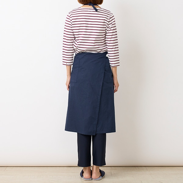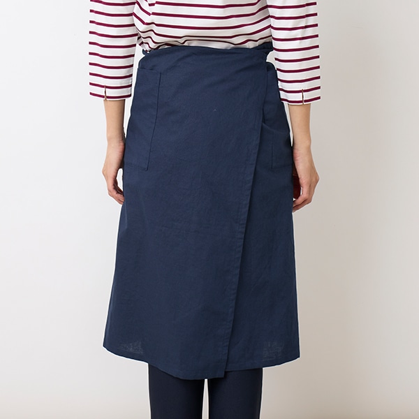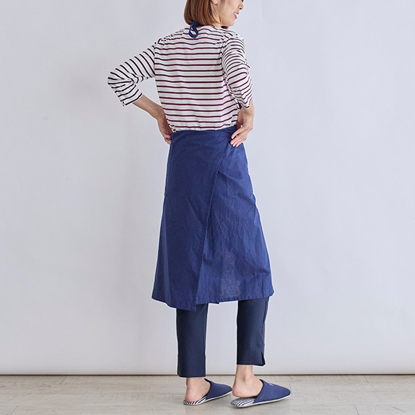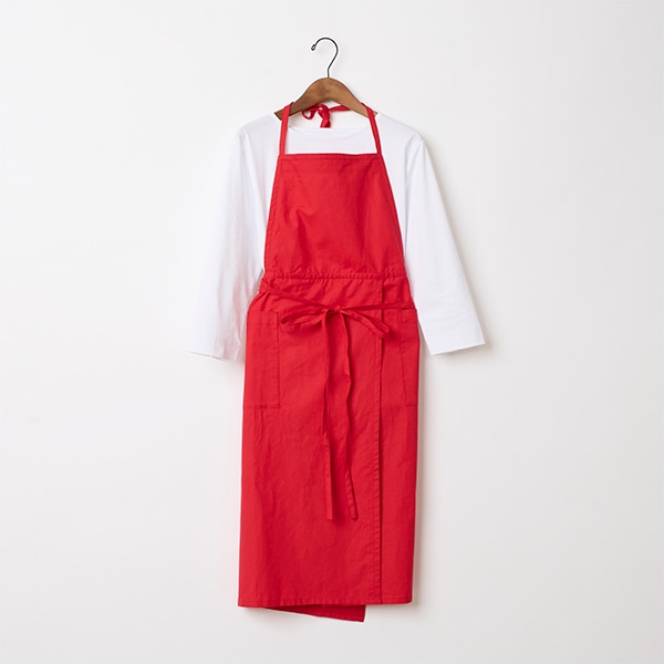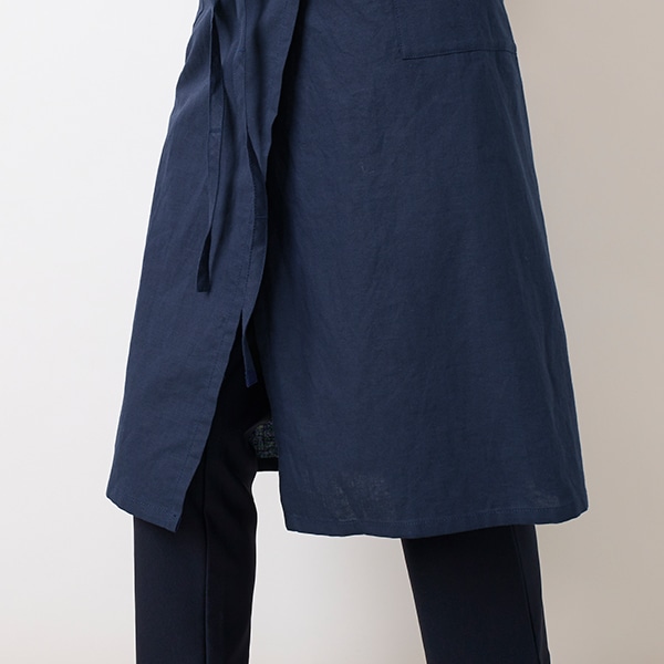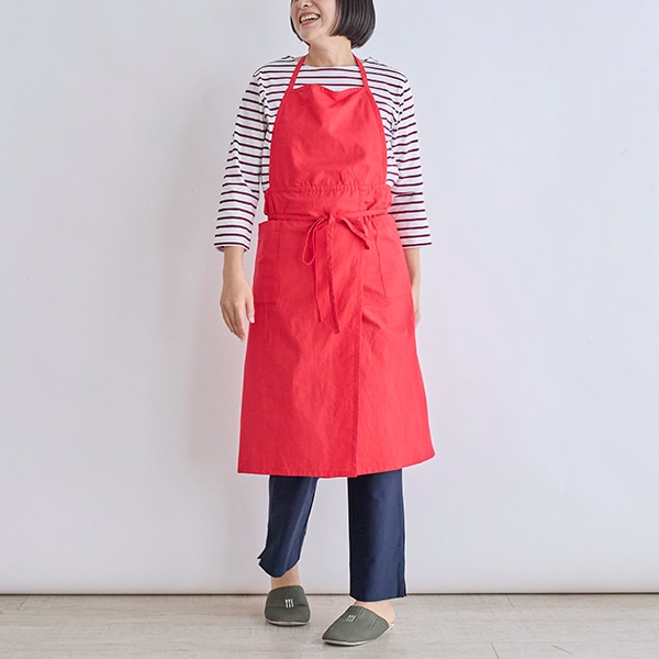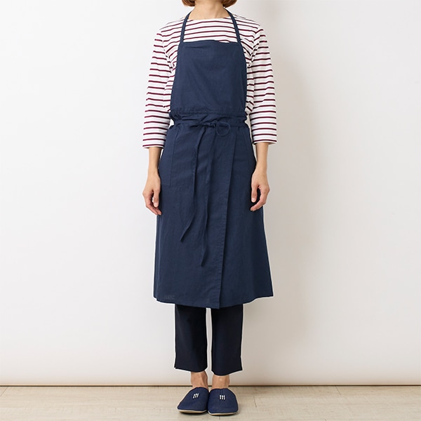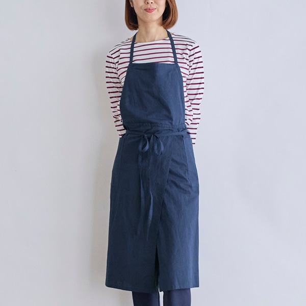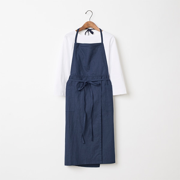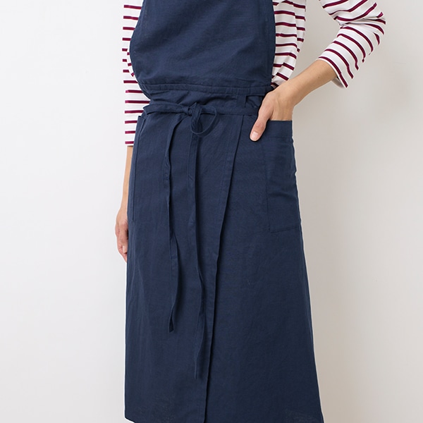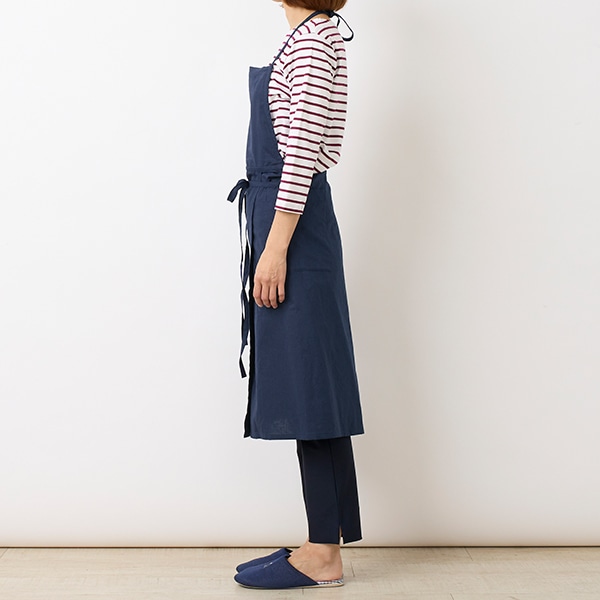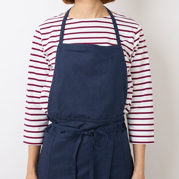 コットンリネン素材を使用した、シンプルな胸当てエプロン。