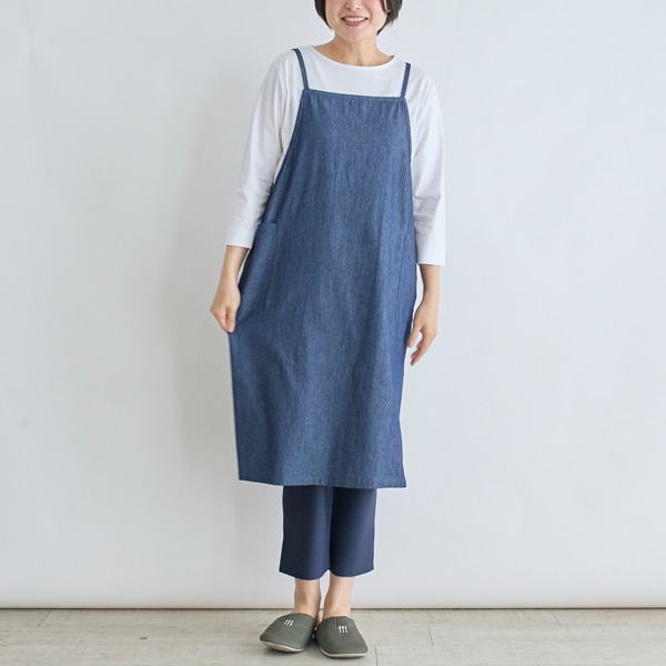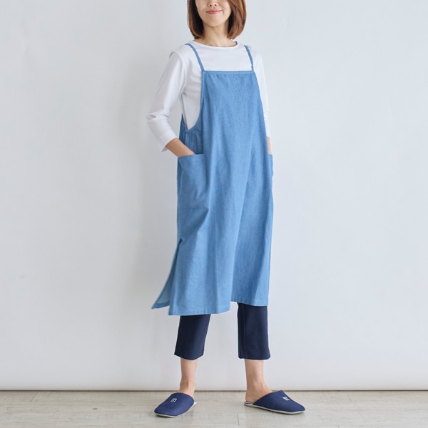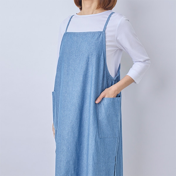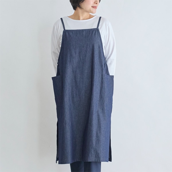 キャミソール型のデニムエプロン。