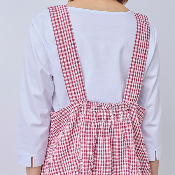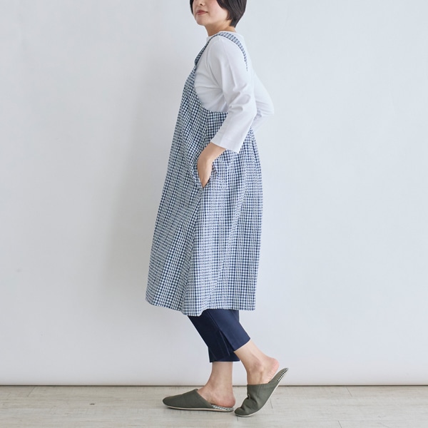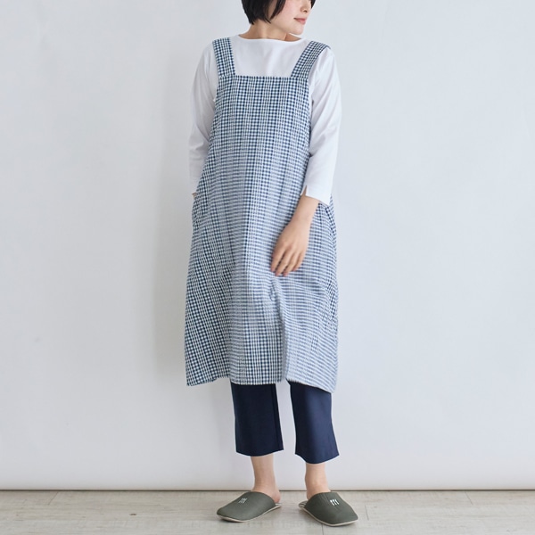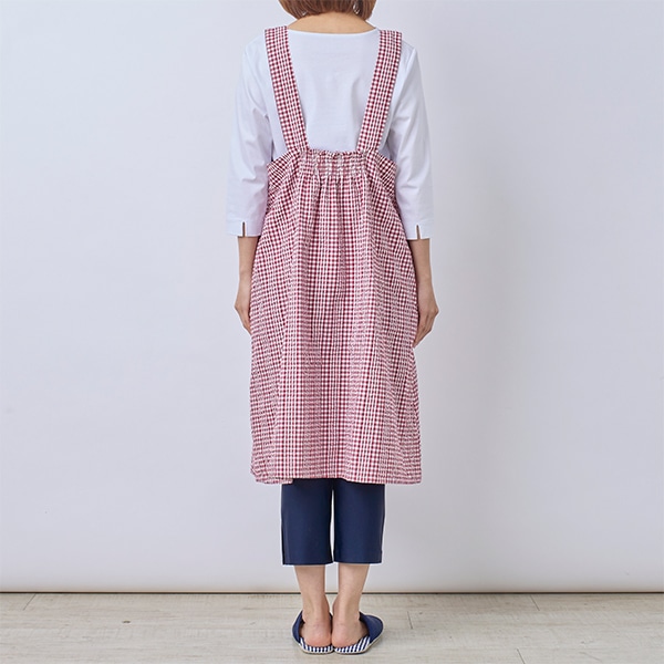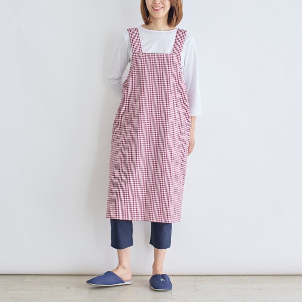 チェック柄のチュニックエプロン。