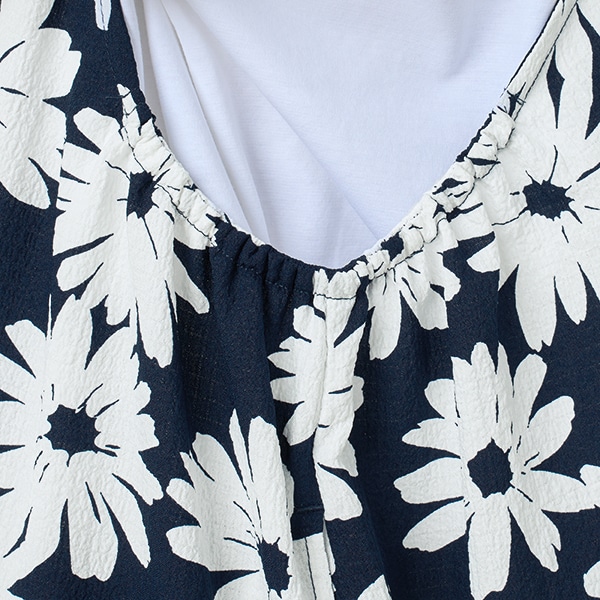 安定感のある太めの肩紐と、ストンとした落ち感のあるシルエットで、体型をさりげなくカバーしながら、締め付け感なく一日中快適に過ごせます。
